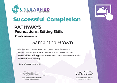 I’m continuously learning new techniques and furthering my dog photography knowledge through courses offered by Unleashed Education, Hair of the Dog Academy and various podcasts and books.